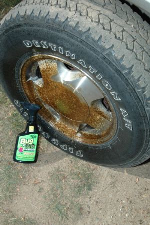 thankfully he had in with all his stuff- and he and I and Pastor Maxted's wife, Bev (bless her!) scrubbed and rubbed as much as we could get off before total darkness squelched our project. Afterwards, we wished we would've taken photos but we were in such a panic and it was getting dark quickly. We were just sick about it!!! Thursday morning, Larry and I hit the project again, and worked about 11 hours between the two of us. Now in the daylight, everywhere we looked was splattered and speckeled with tar and oil- 5 feet up the side for the total length of the 45 foot motorhome and the left side, hood and front of the Suburban. We worked 2 full days and got off most of the surface oil and tar that is visible, but there is still much underneath the wheel wells and bag compartments, etc to get off.
