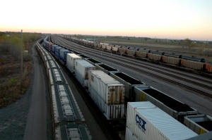 Before we left North Platte, NE Larry insisted on going and seeing the train yards. LeRoy Black was so kind to take him out and see them as he is employed by Bailey Yards. It's the biggest train yard in the U.S. and the second largest train yard in the world. It has over 400 tracks by which approximately 175 tracks are for sorting and they travel to destinations all over the U.S. There are freight cars, box cars, tank cars, refrigeration cars, flat cars, auto rack cars, plus many more! Bailey employs about 3,500 people. Needless to say, Larry was mezmerized by the endless web of tracks that headed every direction.